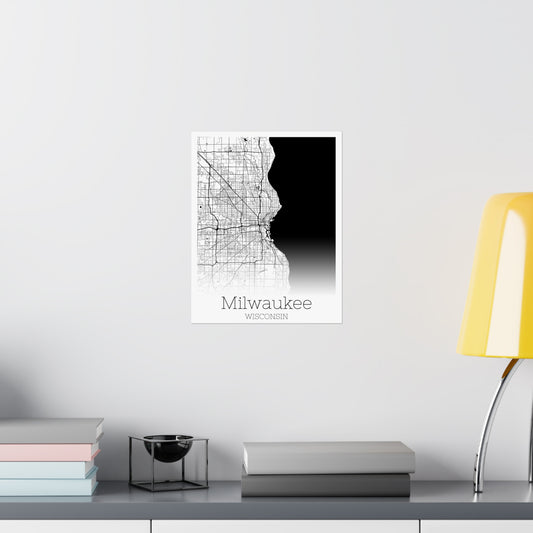 Milwaukee Wisconsin City Map Matte Vertical Posters