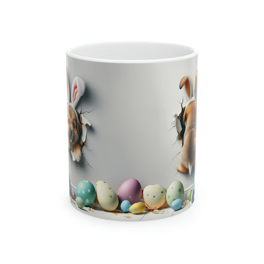 Easter dog coffee cup, Easter puppy break out, Ceramic Mug, 11oz