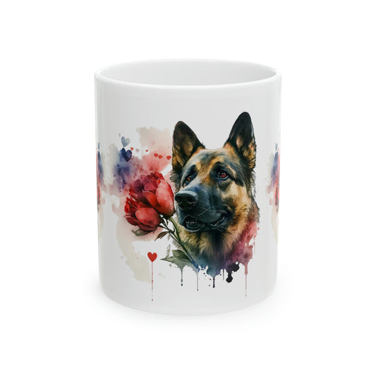 Dog Watercolor Valentine Flowers, Ceramic Mug, 11oz