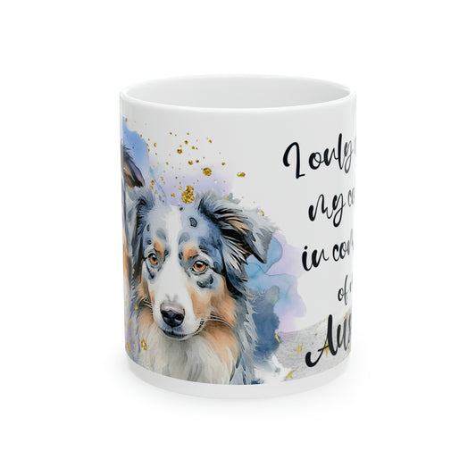 Dog Coffee Cup I only drink coffee in company of my Aussie, Ceramic Mug, 11oz