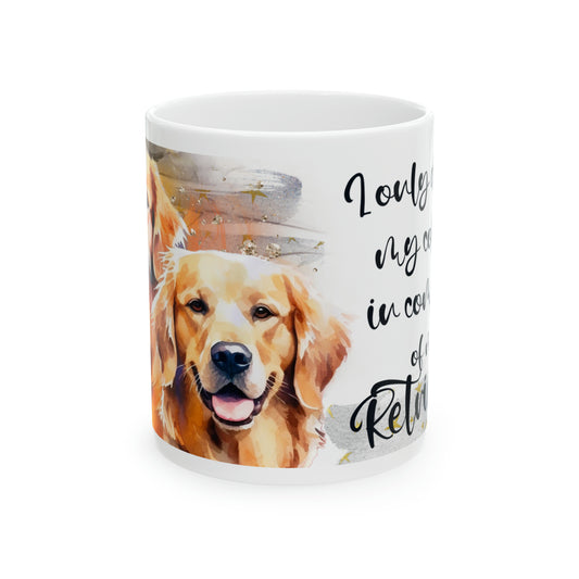 Dog Coffee Cup I only drink coffee in company of my Golden, Ceramic Mug, 11oz