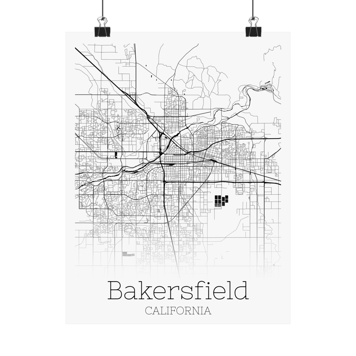 Introducing the perfect Bakersfield California City Map premium matte vertical posters. Made with museum-grade paper (175gsm fine art paper), these posters translate Bakersfield California City Map digital artwork into exquisite real life décor. Available in multiple sizes, each poster is printed with top-tier pigmented archival inks for a stunning end result.